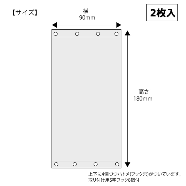 (本体)約w90×h180cm、(S字フック)約w1.6×h2.7cm