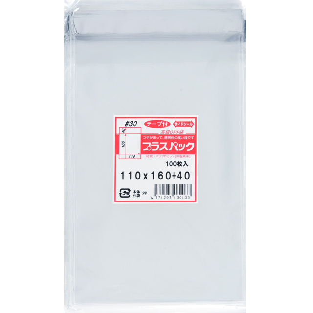 横幅110ミリで平袋(テープなし)の袋ですと下記の2種類の規格品(プラスパック)がございます。